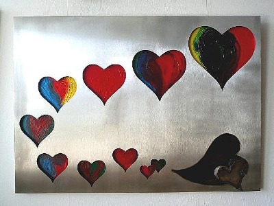 "Herzfarben II"; Januar 2009; Metall, Holz, Acryl;