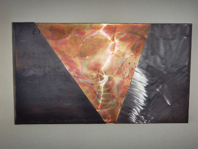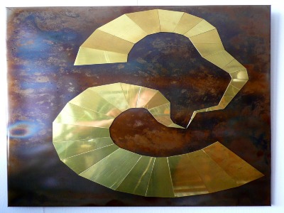 "Sonnenaufgang in den Bergen";                   September 2001; Höhe 545 mm;                   Breite 475 mm; Stahl - Kupfer