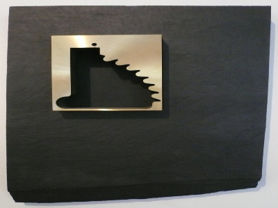 "Ballon über den Wolken"; März 2002; Schiefer - Messing